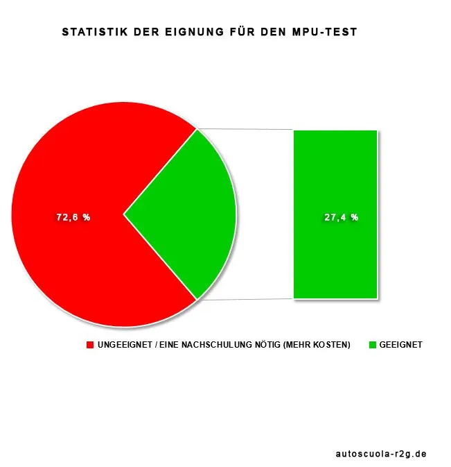 Von rund 100.000 Menschen, die bundesweit pro Jahr die MPU absolvieren, kommen laut Statistik zwei Drittel wegen einer Fahrt im Alkoholrausch, 20 Prozent treten nach Drogen- oder Medikamentenmissbrauch an. Die übrigen 14 Prozent sind Punktesünder. Dabei sind extremes Fahrverhalten im Straßenverkehr und als Konsequenz die MPU beinahe ein reines Männerproblem. Der Anteil der Frauen, die zur Untersuchung vorgeladen werden, liegt gerade einmal bei fünf Prozent.